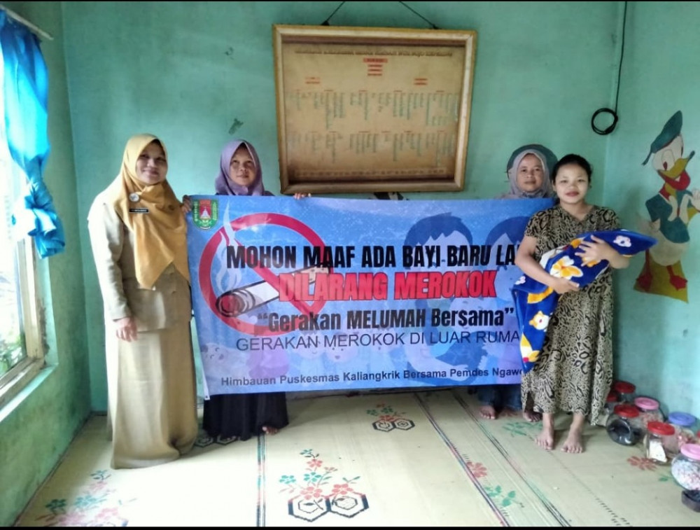 Rumah adalah tempat berlindung, termasuk dari asap rokok. Perokok pasif harus berani menyuarakan haknya untuk tidak menghirup asap rokok. Sehingga diperlukan langkah-langkah untuk menghindari paparan asap rokok dalam rumah. Oleh karena itu, tercetuslah inovasi Puskesmas Kaliangkrik yaitu GERAKAN MELUMAH (Merokok Di Luar Rumah) Kecamatan Kaliangkrik. Gerakan Melumah ini merupakan gerakan tidak merokok di dalam rumah ketika ada bayi baru lahir baik anggota keluarga maupun orang yang berkunjung yang akan diterapkan di seluruh desa di wilayah Kecamatan Kaliangkrik. Dispesifikkan pada lingkungan dengan bayi baru lahir di dalam rumah tersebut karena bayi baru lahir atau neonatus adalah anak yang berusia di bawah 28 hari dan selama 28 hari pertama kehidupannya, dan anak tersebut berada pada risiko kematian tertinggi. Gerakan Melumah ini ditandai dengan penempelan banner di luar rumah warga sebagai tanda bahwa di dalam rumah tersebut ada bayi baru lahir, sehingga siapapun orang yang masuk dilarang merokok di dalam rumah. Inovasi ini tercetus atas dasar hasil dari Musyawarah Masyarakat Desa (MMD) yang sudah dilakukan di 20 desa di Kecamatan Kaliangkrik, di mana mayoritas permasalahannya adalah merokok. Berdasarkan artikel The Lullaby Trust, bayi yang tumbuh di lingkungan dengan asap rokok akan meingkatkan risiko Sudden Infant Death Syndrome (SIDS) atau sindrom kematian bayi secara mendadak dikarenakan kandungan dari asap rokok yang membahayakan bayi. Hal ini juga sejalan dengan hasil penelitian Behrooz Et.all (2018) yang menunjukkan bahwa paparan merokok setelah melahirkan berpengaruh secara signifikan terhadap kasus bronkiolitis pada bayi. Hal ini juga sejalan dengan meta analisis DiFranza Et.all (2012) di mana ditemukan banyak bukti bahwa paparan asap rokok di lingkungan sekitar menyebabkan bayi dan anak kecil berisiko lebih tinggi dirawat di rumah sakit karena infeksi saluran pernapasan bawah yang disebabkan oleh respiratory syncytial virus (RSV) dan meningkatkan keparahan penyakit di antara anak-anak yang dirawat di rumah sakit.